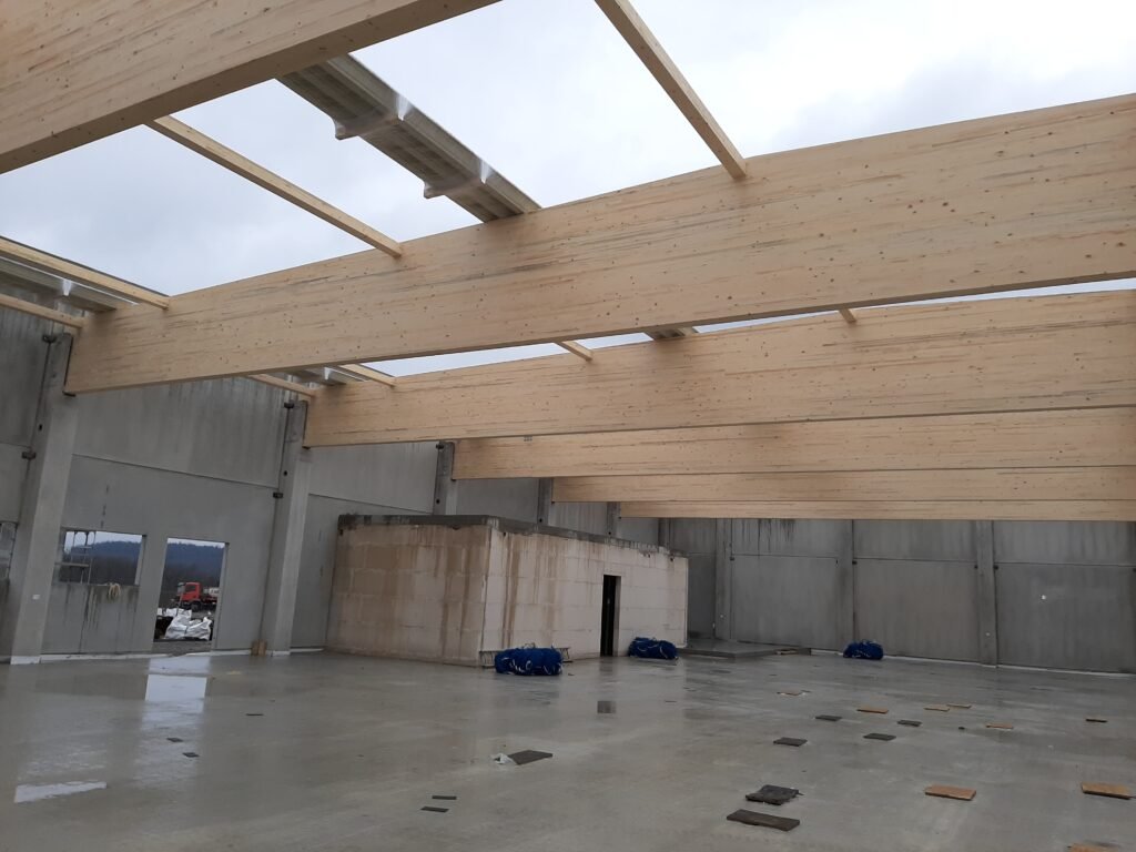 Verkaufshalle mit weitgespannten Holzbindern auf Fertigteilstützen. Restaurant in Ortbetonbauweise mit Aufstockungs-Option. Die Gründung erfolgte auf bodenverbesserten Grund durch Rüttelstopfsäulen.