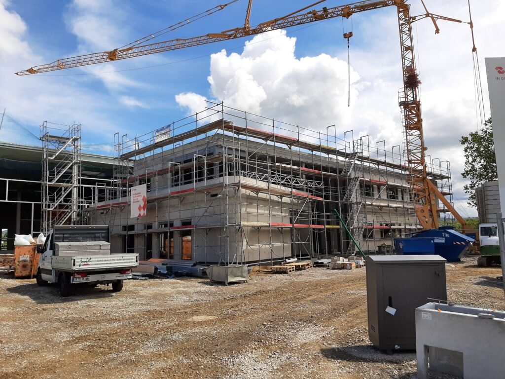 Die 2-schiffige Halle wurde in Stahlrahmenbauweise hergestellt. Der Büroanbau erfolgte in Ortbetonbauweise.