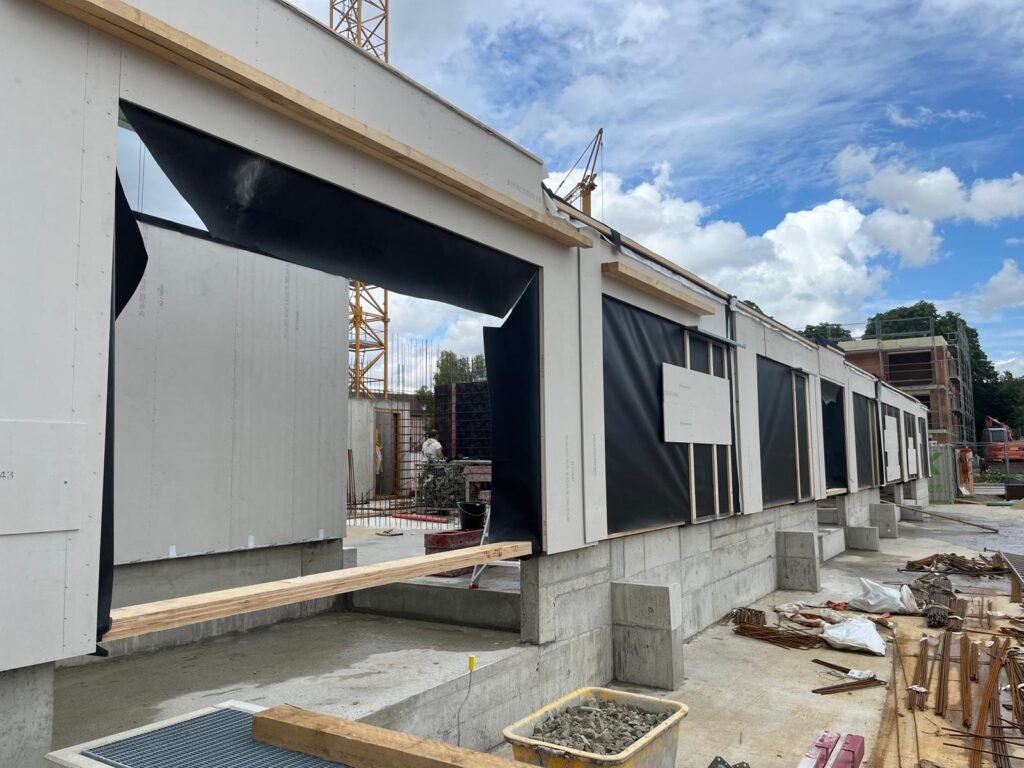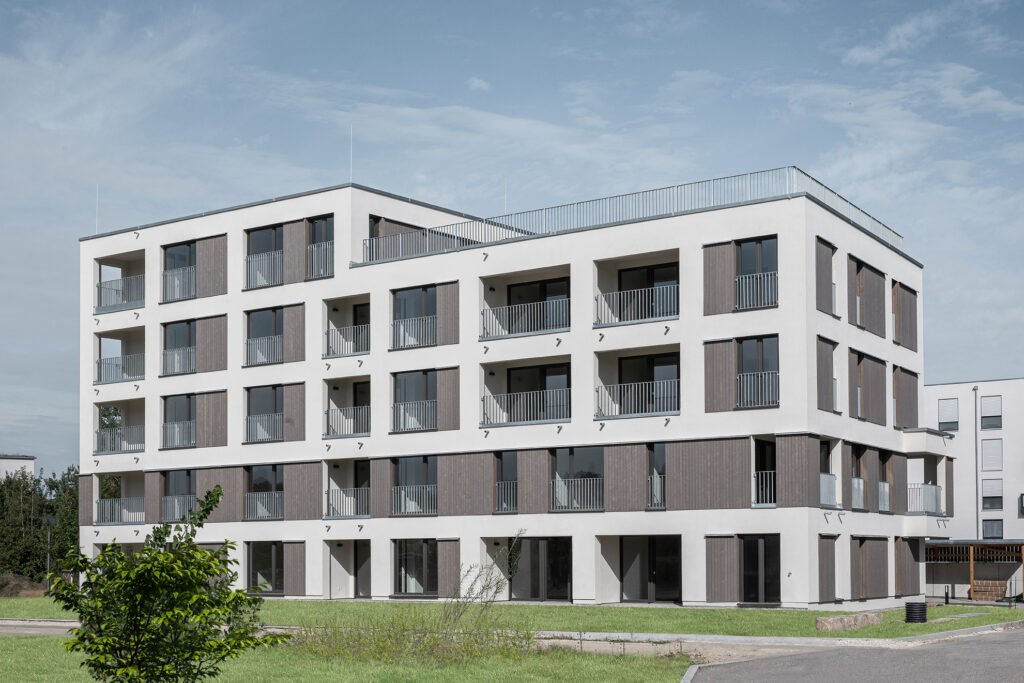 Das Mehrfamilienhaus wurde mit tragenden und vorelementierten Holzaußenwänden errichtet. Für eine wirtschaftliche Ausführung wurden die Innenwände in Kalksandstein-Mauerwerks-Bauweise sowie die Decken als Elementdecken in Stahlbetonbauweise hergestellt.